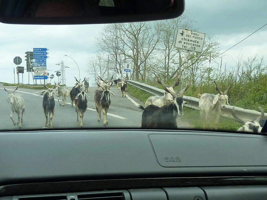 If you have rented a car, it is easy to find your way to Pizzo. It's direction south, Reggio Calabria. You can either take the highway which is free in the South of Italy (green sign) or follow the national road (blue sign). We always take the national road, and drive below the highway viaduct, following the signs to PIZZO (about 25km).